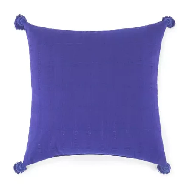 Outdoor Decor 18 X 18 In Solid Olefin Textured Blue Square Throw Pillow