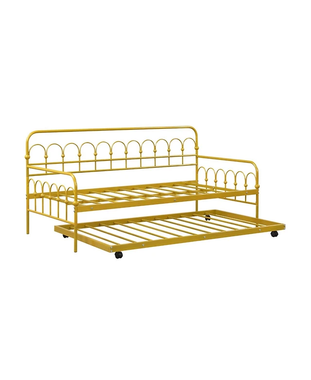 Twin Size Golden Metal Daybed with Trundle and Lockable Wheels-Twin Size