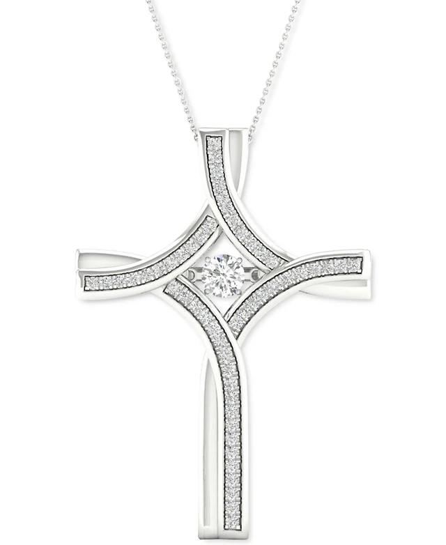 Twinkling Diamond Star Diamond Cross 18' Pendant Necklace (1/5 ct. t.w.) in 10k White Gold