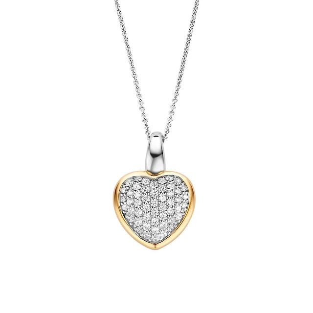 Two Tone Heart Pave Necklace