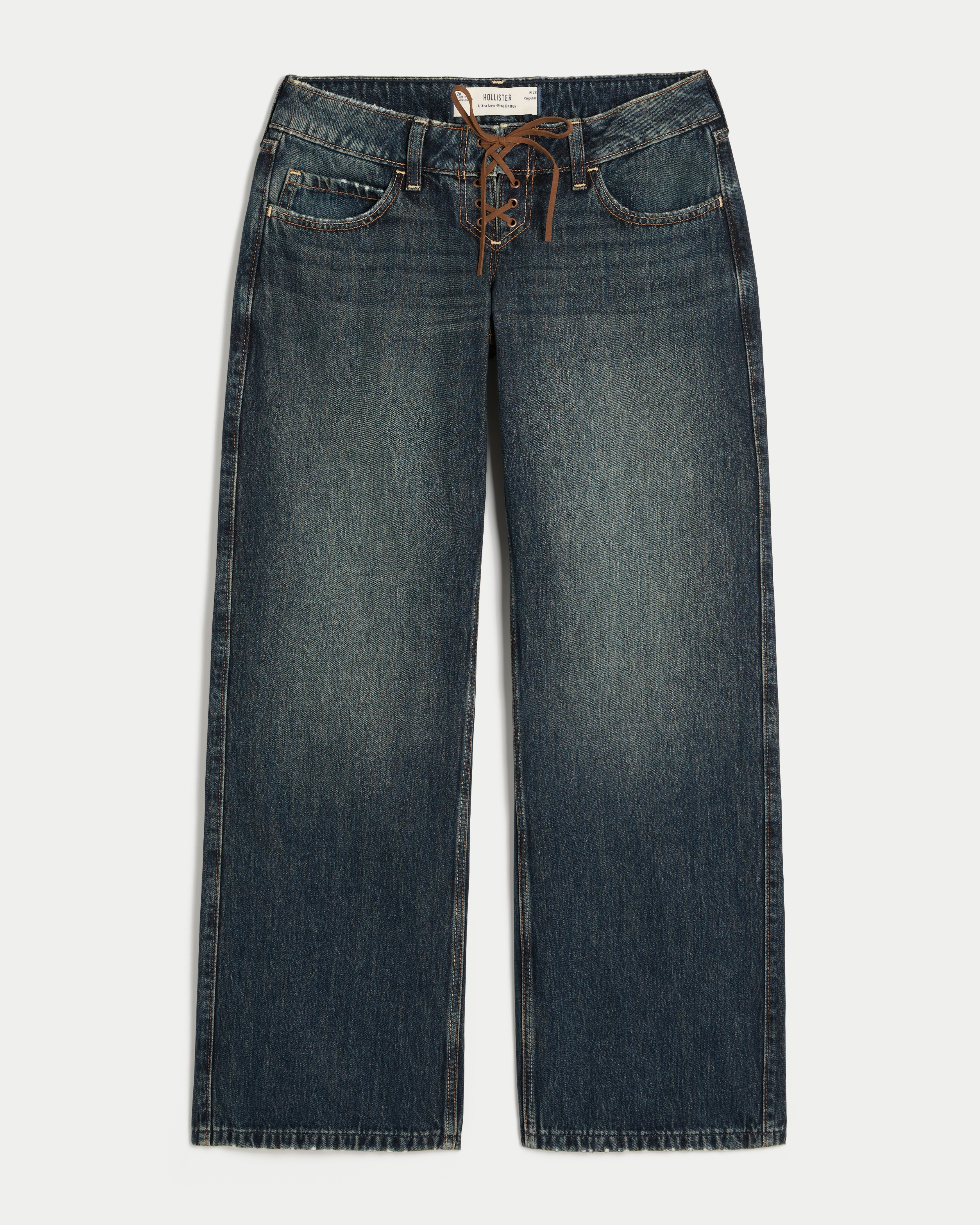 Ultra Low-Rise Dark Wash Lace-Up Baggy Jeans