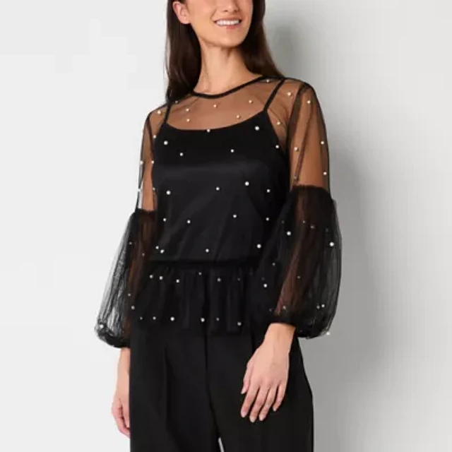Ultra Pink Womens Crew Neck Long Sleeve Embellished Blouse