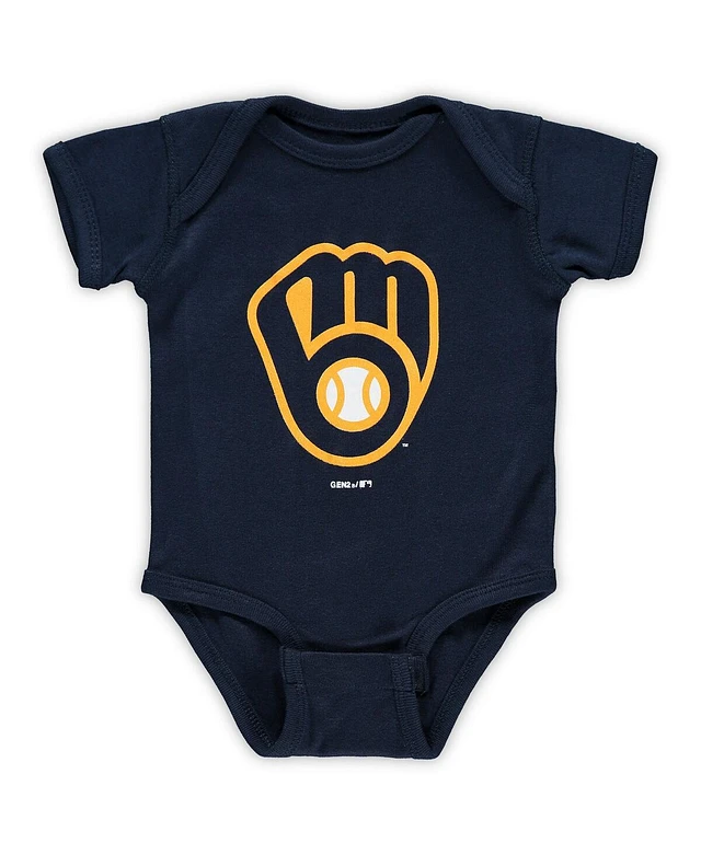 Unisex Newborn Infant Navy Milwaukee Brewers Team Primary Logo Bodysuit