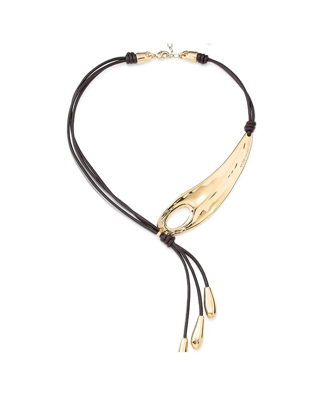 UNOde50 Long Leather Whip and Gold Plated Drop Necklace