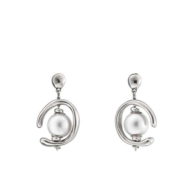 UNOde50 Sterling Silver Metal Clad and Cultivated Pearl Earring
