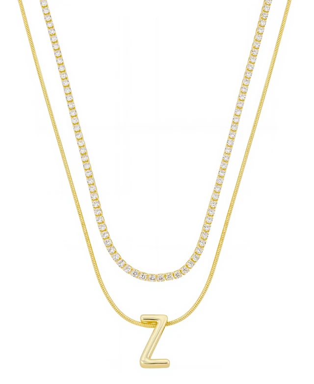 Unwritten Letter "Z" Initial Snake Chain Cubic Zirconia Chain Necklace With Extender 2Pcs Set