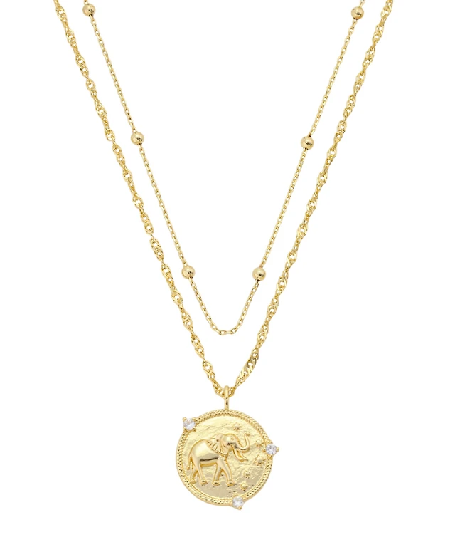 Unwritten Shoot For The Stars Elephant W/Cubic Zirconia Round Twist Chain And Beaded Chain Necklace 2 Pcs Set
