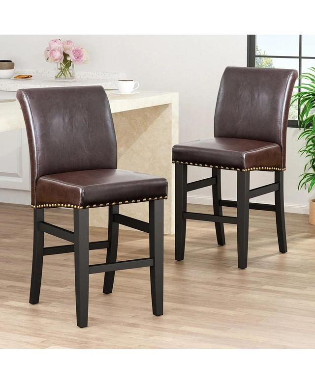 26.5" Counter Height Stools Set of 2, Upholstered with Backrest and Rubber Wood Frame-The Pop Home