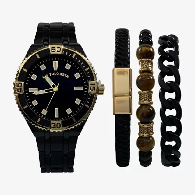 U.S. Polo Assn. Mens Black 4-pc. Watch Boxed Set Usc20294jc