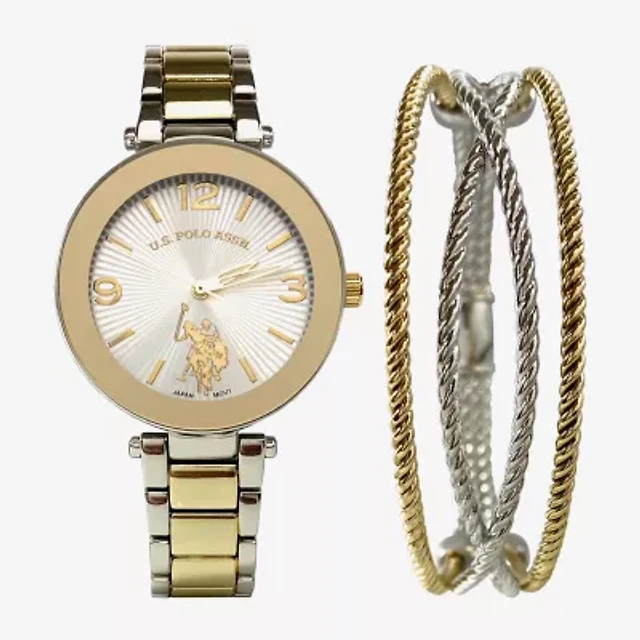 U.S. Polo Assn. Womens Two Tone 2-pc. Watch Boxed Set Usc6033jc