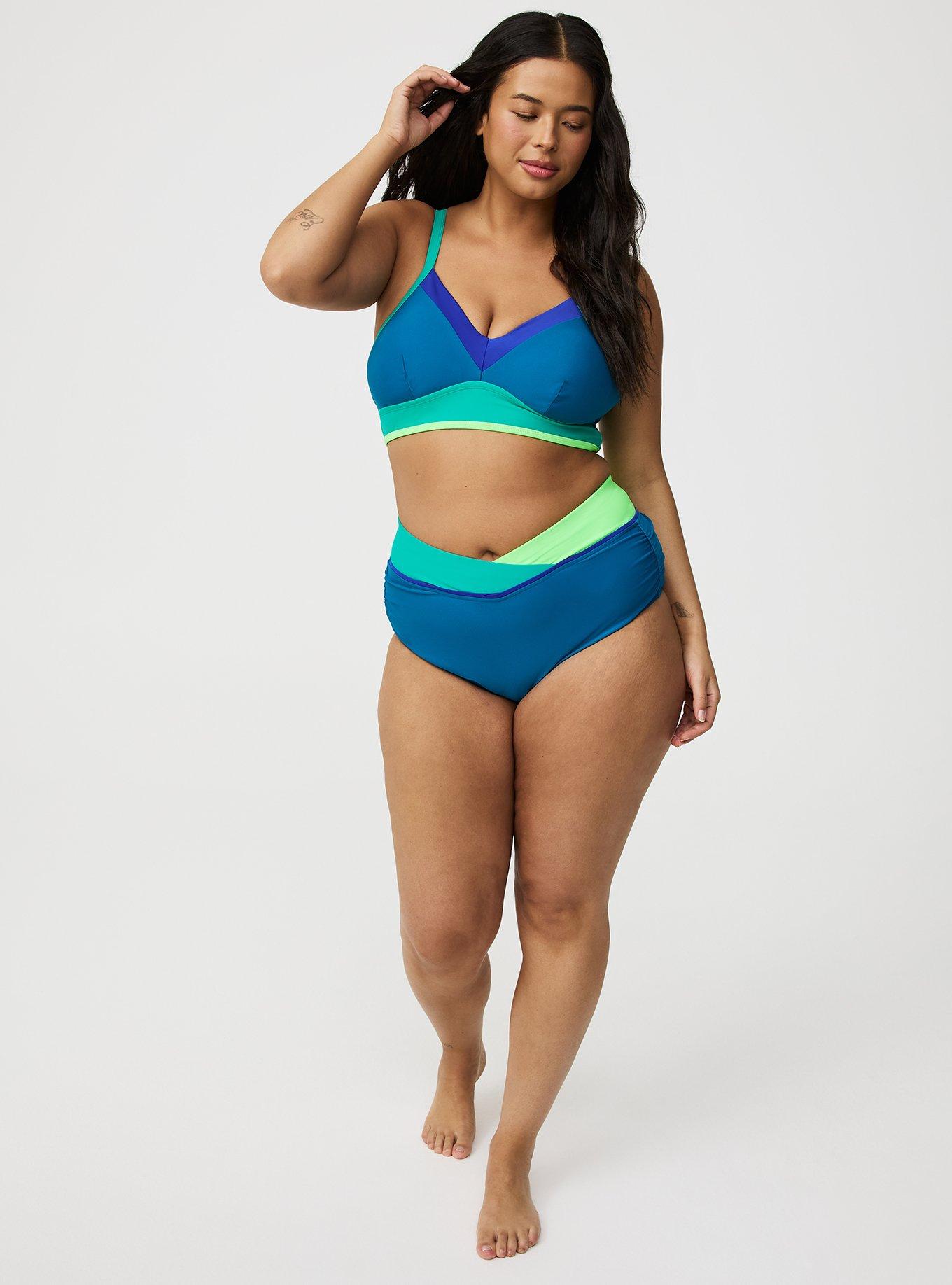 FIT High rise. Cheeky coverage. MATERIALS + CARE Nylon-spandex blend knit fabric. 80% nylon, 20% spandex. Machine wash cold. Dry flat. Imported. DETAILS Lightly lined. Ruched detail. V-wrap detail. UPF 40+.
