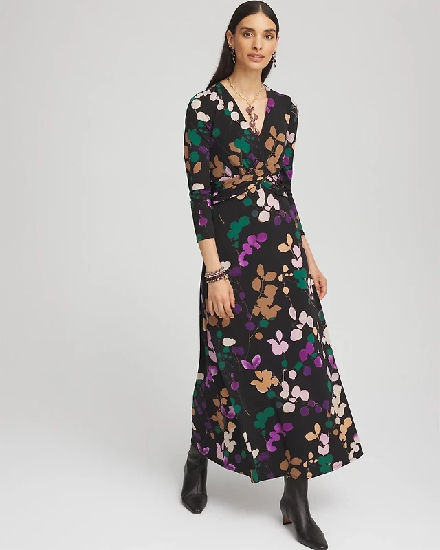 V-neck 3/4 Sleeve Floral Maxi Dress