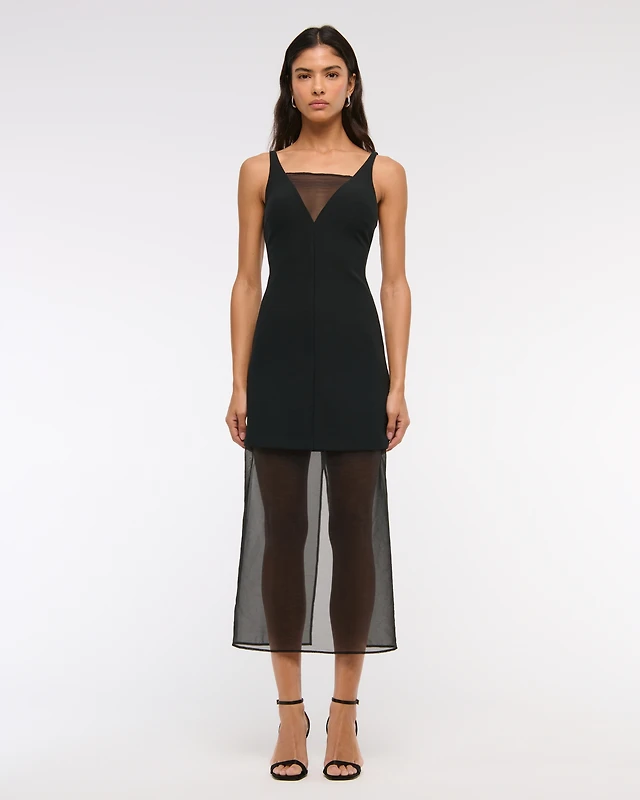 V-Neck Sheer Midi Dress