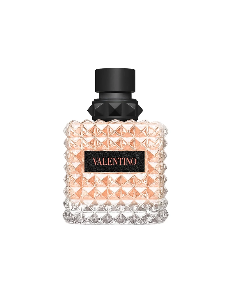 Donna Born in Roma Coral Fantasy by Valentino is a floral fruity scent energized by a colorful and zesty orange. Blended with feminine Rose Accords and Jasmin Grandiflorum, this fragrance reveals a bright contemporary femininity. The perfume bottle pays tribute to the iconic Valentino Rockstud. This edgy pyramidal design, inspired by Roman architecture, is a house signature of Maison Valentino.
