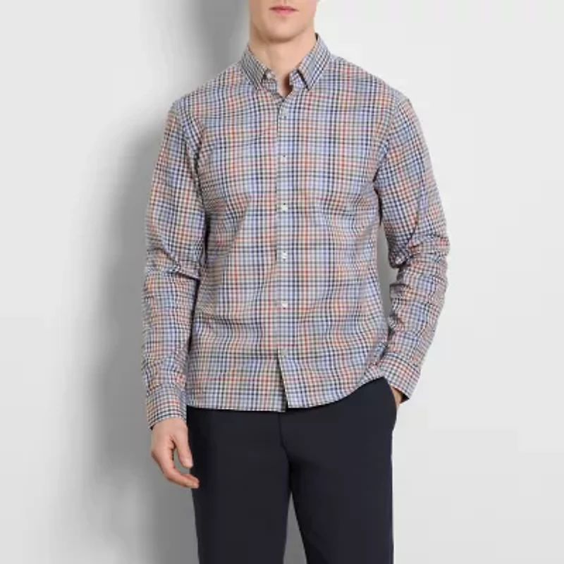 Van Heusen Everyday Defense Stain Shield Mens Long Sleeve Slim Fit Stretch Fabric Wrinkle Free Button-Down Shirt