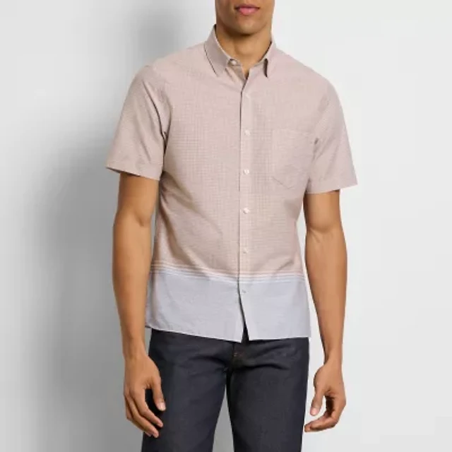 Van Heusen Everyday Defense Stain Shield Mens Short Sleeve Slim Fit Stretch Fabric Wrinkle Free Button-Down Shirt
