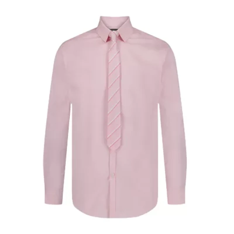 Van Heusen Little & Big Kid Boys Stretch Fabric Long Sleeve Point Collar Shirt + Tie Set