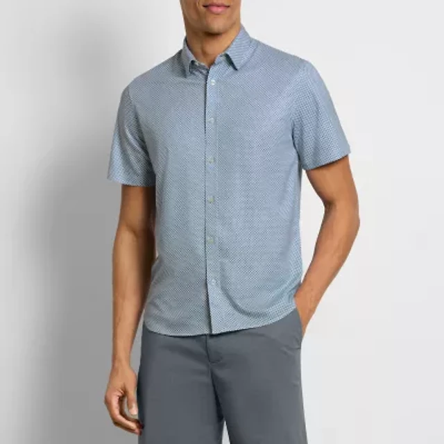 Van Heusen Performance Knit Mens Short Sleeve Slim Fit Stretch Fabric Button-Down Shirt