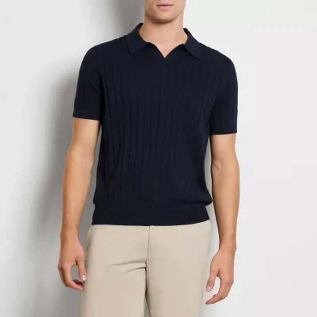 Haggar Johnny Collar Ribbed Mens Short Sleeve Polo Sweater