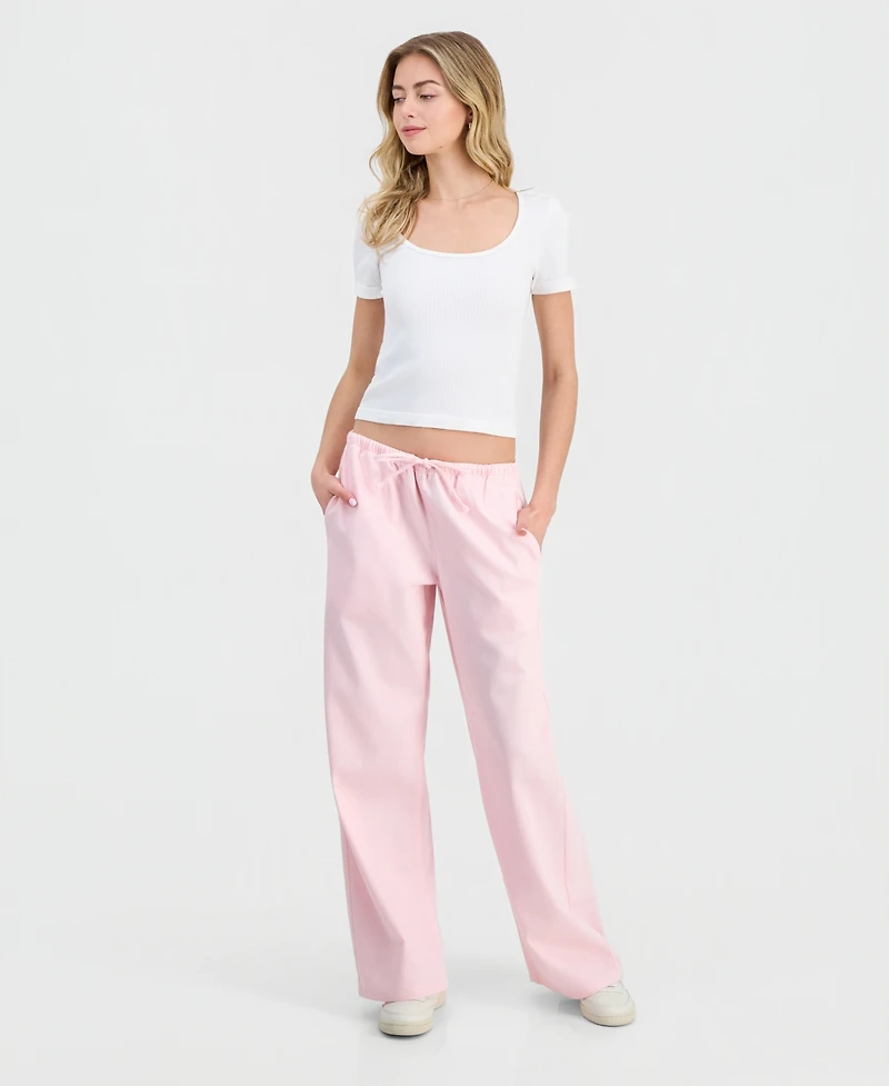 Vanilla Star Juniors' Drawstring-Waist Wide-Leg Jeans