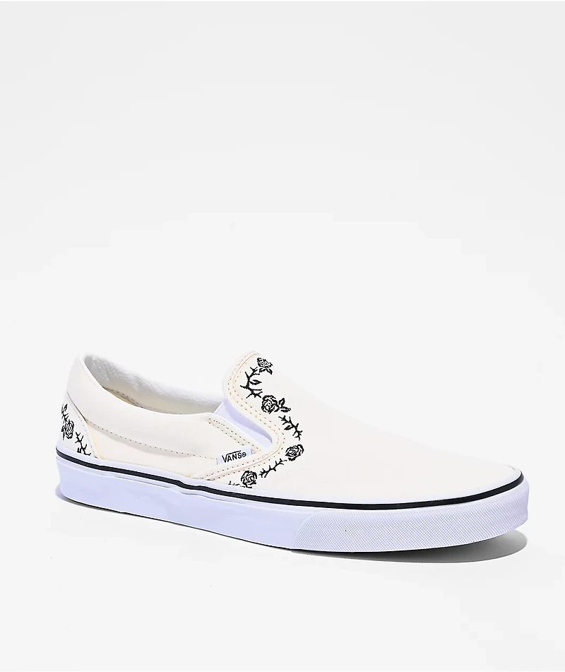 Vans Classic Slip-On Rose & Thorn White Skate Shoes