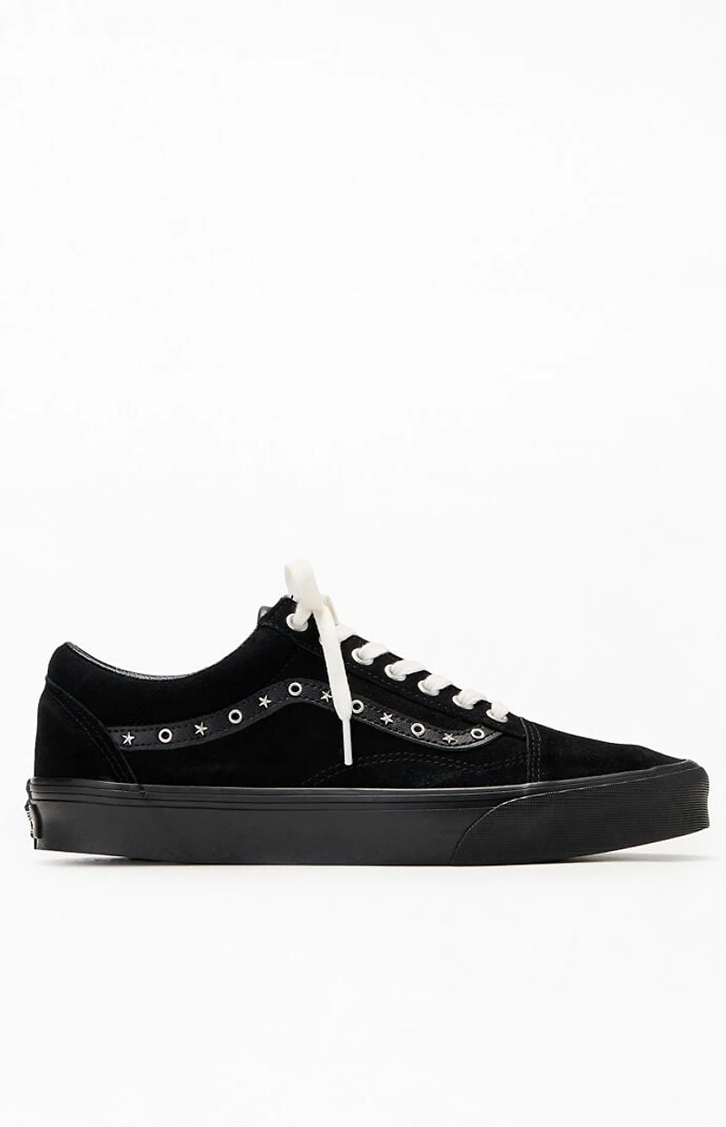 The Star & Grommet Old Skool Shoes from Vans bring classic skate style with bold, edgy detailing. They feature a suede and leather upper, a leather Sidestripe with star and grommet studs, a lace-up front closure, a low-profile silhouette with a padded collar, and Vans’ signature waffle outsole for reliable grip.