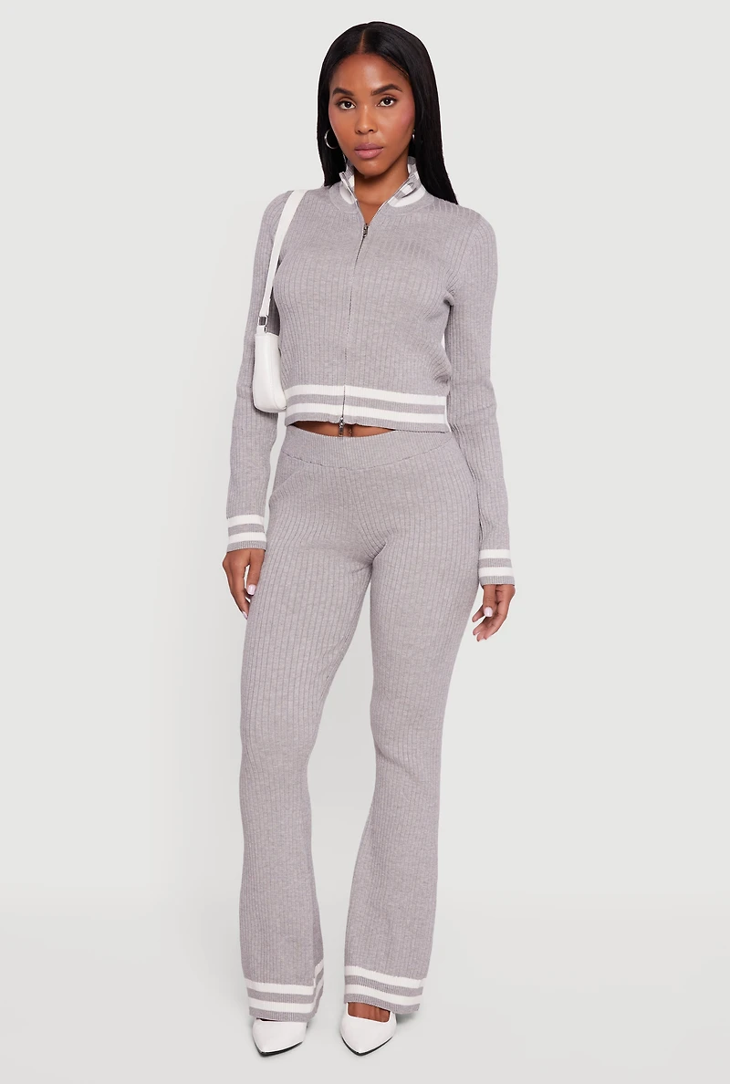 Varsity Stripe Ribbed Knit Boot Cut Pants