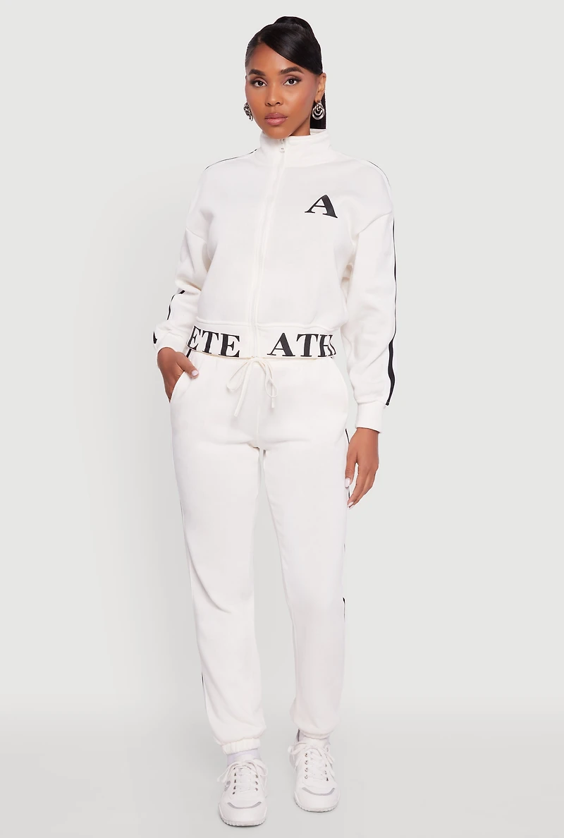Step up your casual game with these Varsity Stripe Side Drawstring Waist Sweatpants. Designed for those who love a sleek, sporty look without sacrificing comfort, these fleece-lined sweatpants are your new go-to for chill days and athleisure vibes. The slim, tapered fit and mid-rise waist with an adjustable drawstring ensure you stay cozy and stylish whether you’re lounging at home or out with friends. Soft fleece material for ultimate comfort and warmth Mid-rise waist with drawstring for a customizable fit Slim, tapered leg for a flattering silhouette Classic varsity stripe detail adds a trendy sporty touch Full-length design perfect for casual and athleisure looks Model Pictured Wearing Size S Height 5 ft 8 in, Bust 32 in, Waist 25 in, Hips 36 in Fits True To Size Measurements Inseam: 30 in Content and Care Material: SHELL: 100% Polyester, LINING: 95% Polyester, 5% Spandex Care Instructions: Machine Wash, Tumble Dry Country Of Origin: China Rainbow Item Number 3056077660160 WHITE - 3056077660160010