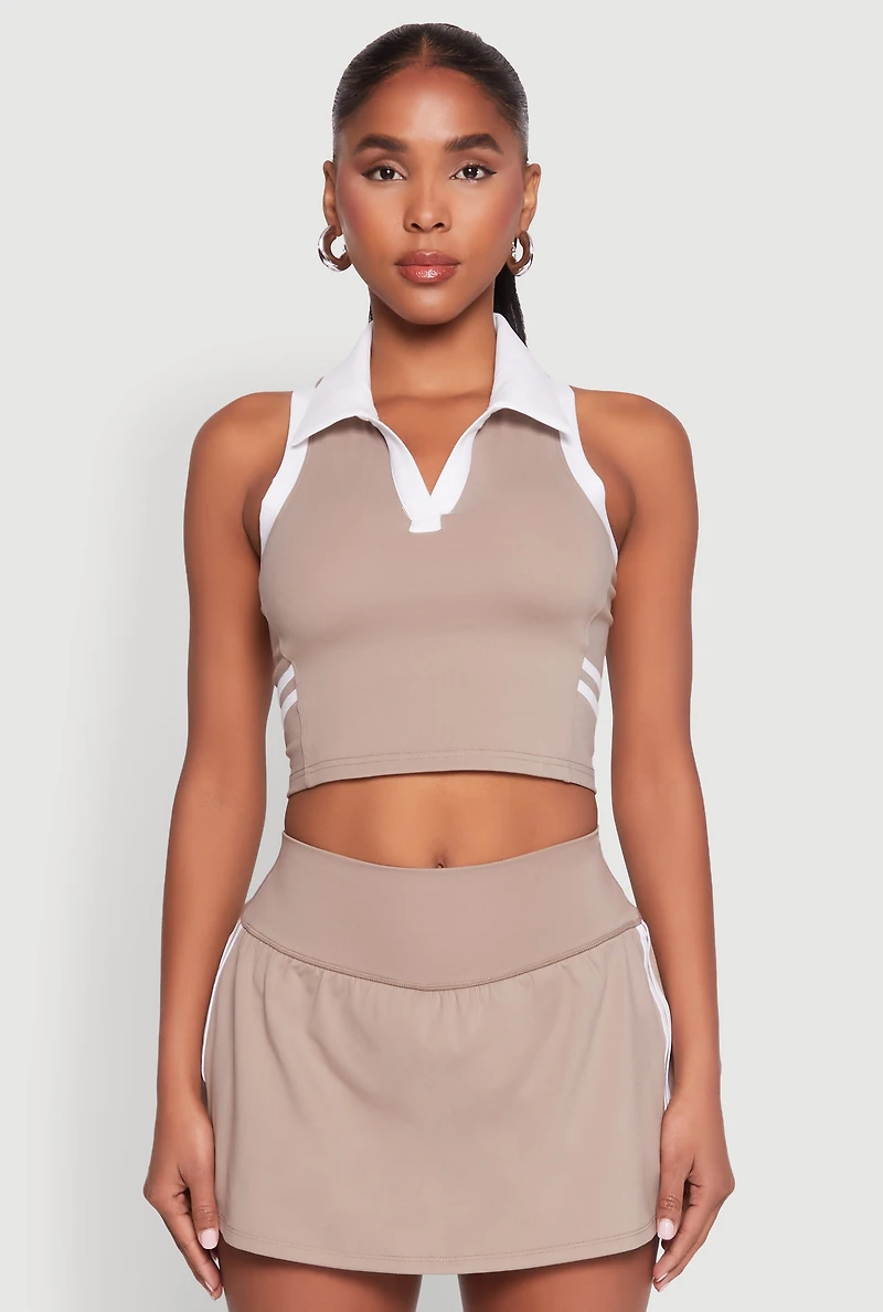 Varsity Stripe Sleeveless Cropped Polo Top