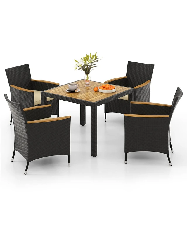 Costway 5 Pcs Patio Dining Table Set for 4 Rattan Conversation Set with Umbrella Hole