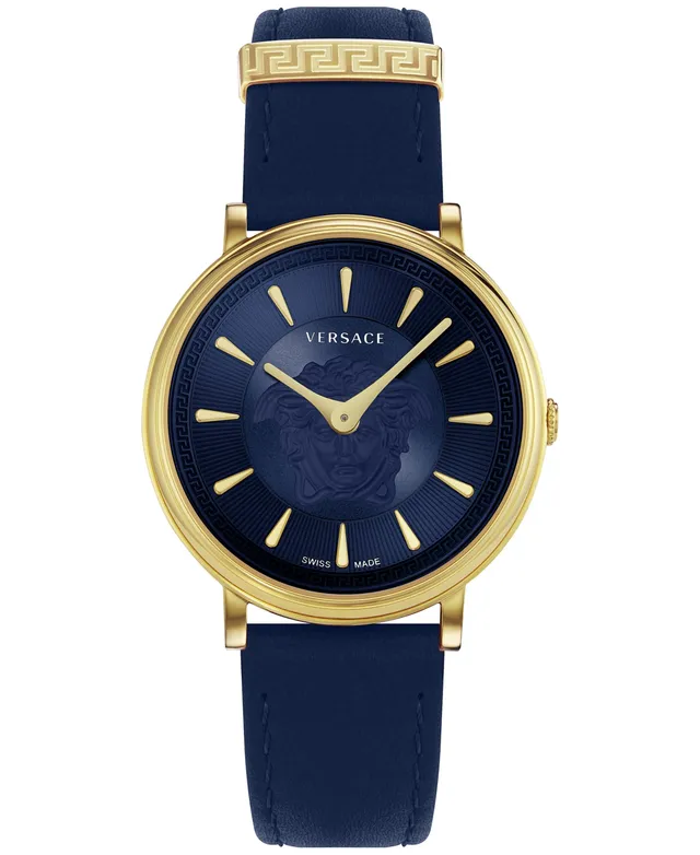 Versace Women's Swiss V-Circle Blue Leather Strap Watch 38mm