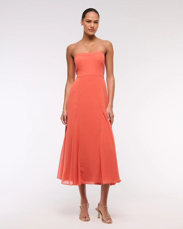 Vestido de largo medio godet sin tirantes A&F Camille