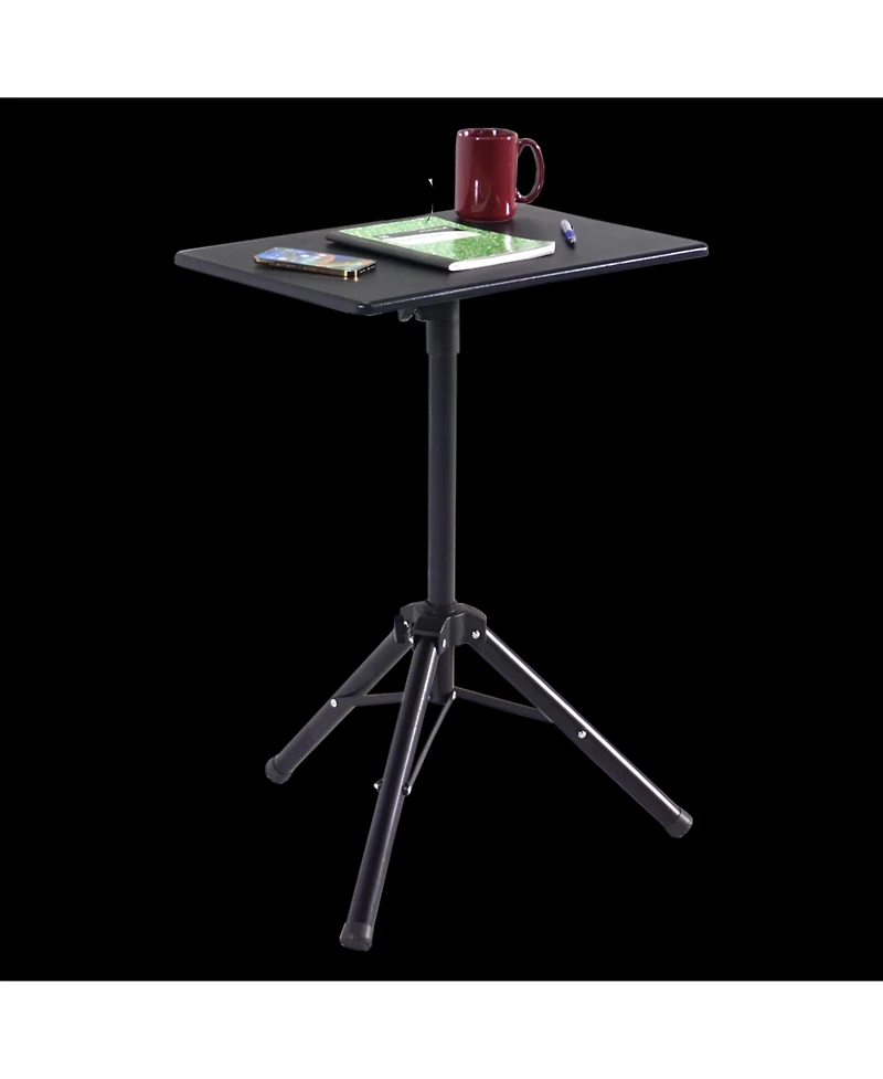 Victor's High Rise Mobile Tripod Standing Desk provides easy setup, transport, and storage. The height adjusts via telescopic pole, for a seamless transition from sitting to standing, or vice versa. The height adjusts between 30.5 and 45 inches. The large workspace has plenty of room for a laptop and supporting devices, such as projectors, laptops, music players, and Dj equipment. The desk comes with a carrying case for the base for easy transportability. It is a great solution for the home, office, classroom, or conference/meeting spaces.