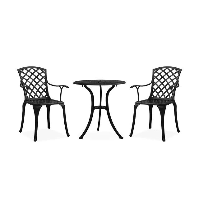 vidaXL 3 Piece Bistro Set Cast Aluminum Black