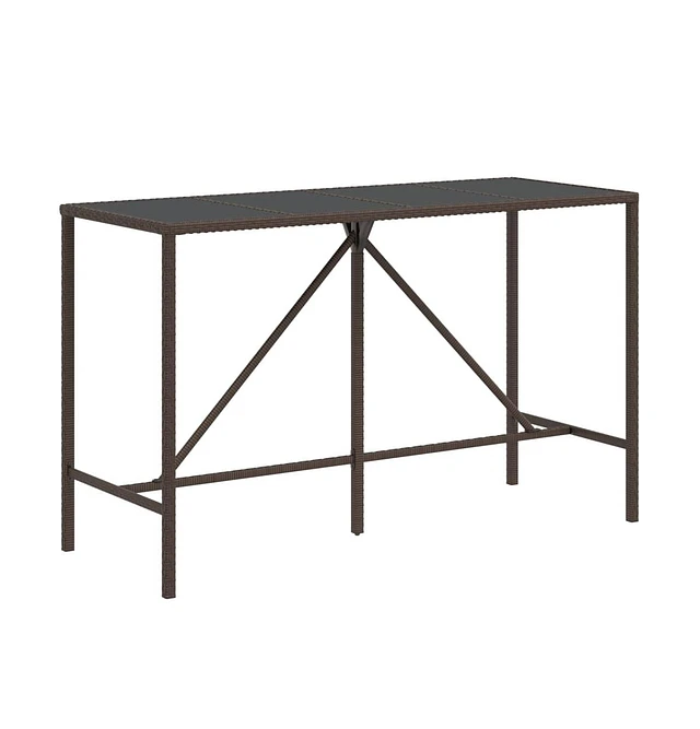vidaXL Bar Table with Glass Top Brown 70.9"x27.6"x43.3" Poly Rattan