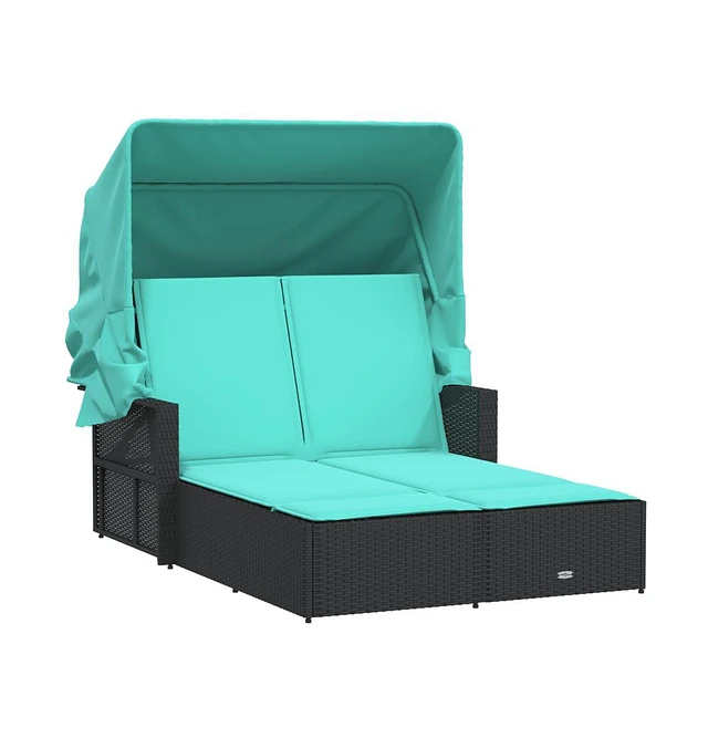 vidaXL Double Sun Lounger with Canopy and Cushions Poly Rattan