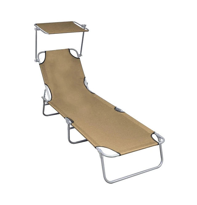 vidaXL Folding Sun Lounger with Canopy Taupe Aluminum