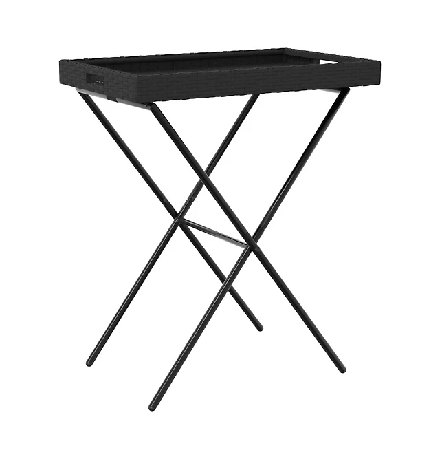 vidaXL Folding Tray Table Black 25.6"x15.7"x29.5" Poly Rattan