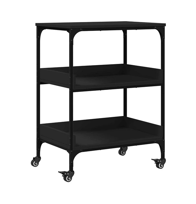 vidaXL Kitchen Trolley Black 23.6"x16.1"x31.7" Engineered Wood