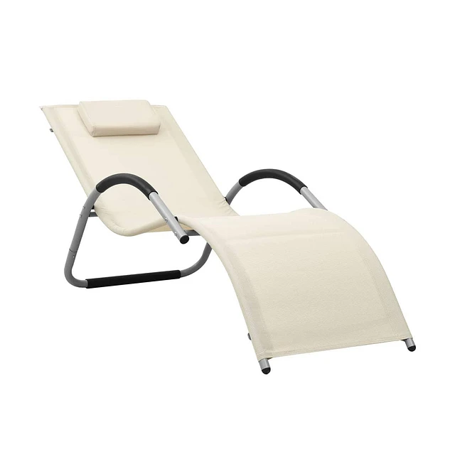 VidaXL Sun Lounger Cream Solid Acacia Wood Adult Foldable