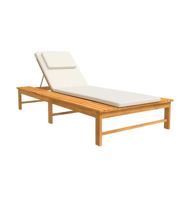 VidaXL Sun Lounger Cream Solid Acacia Wood Adult Foldable