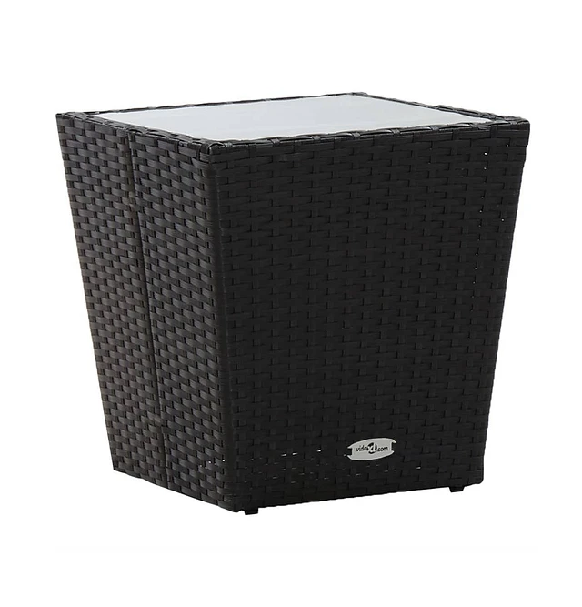 vidaXL Tea Table Black 16.3"x16.3"x16.9" Poly Rattan and Tempered Glass