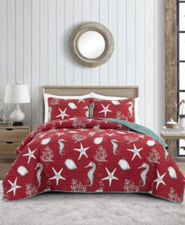 Videri Home Festive Seahorse Reversible 3 Piece Quilt Sets