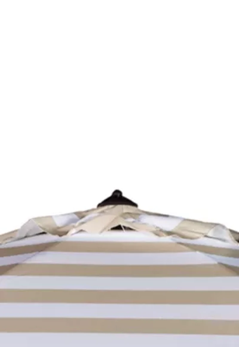 The stylish stripes and scalloped detail of this chic Vienna umbrella fashionably elevates the art of sunbathing. Vienna's round polyester canopy protects you from harsh summer rays, and its aluminum post intelligently complements its fine color palette.