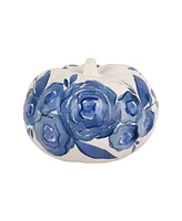 The Blue Camellia Small Figural Pumpkins are handpainted in rich, blue glazes.