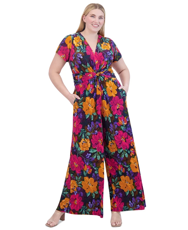 Vince Camuto Floral-Print Twist-Front Wide-Leg Jumpsuit