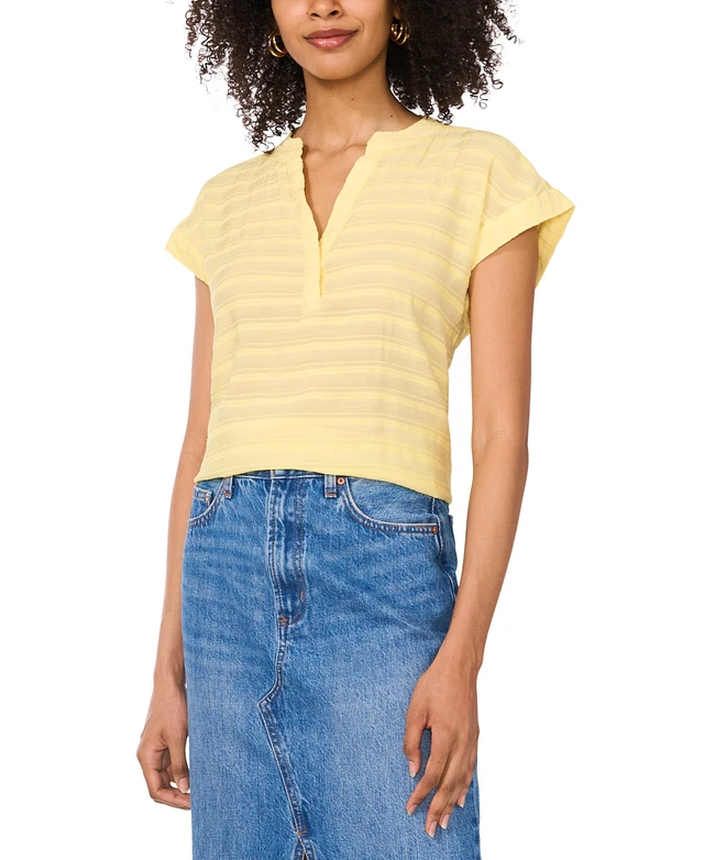 Vince Camuto Women's Textured Split-Neck Cap Sleeve Top