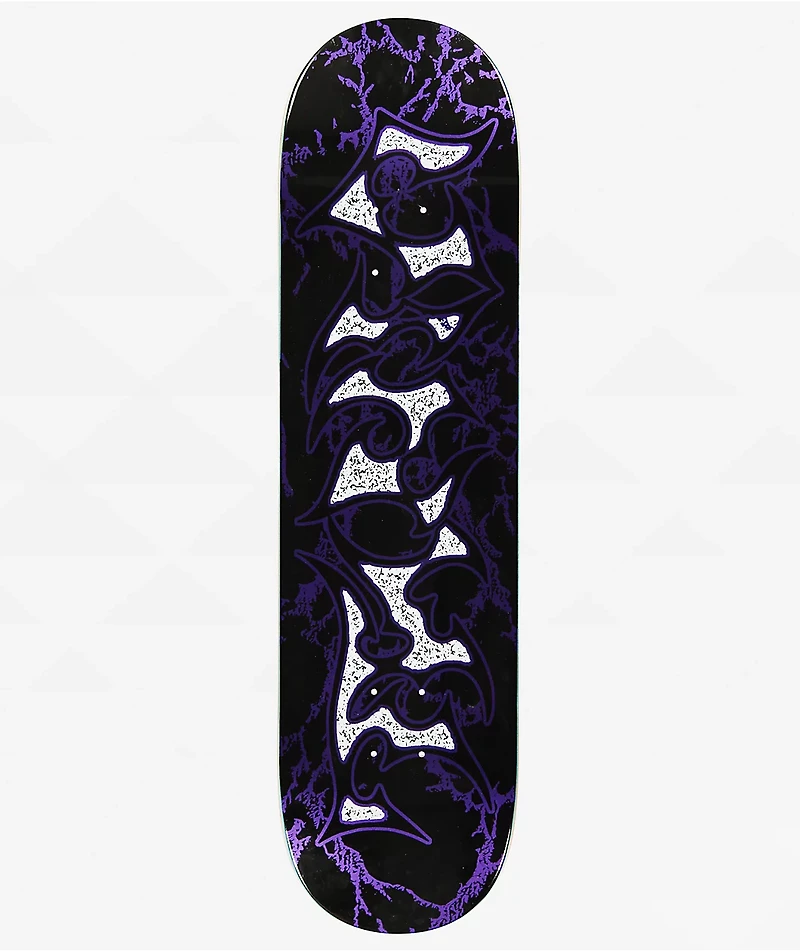 Started by Blake Carpenter as a passion project, Vinyl Skateboards introduces the 8.25" wide Metallic skateboard deck in a seven-ply Maple construction. Offering a 31.8" length and a 14.25" wheelbase, the board features a purple and black cyber-graff