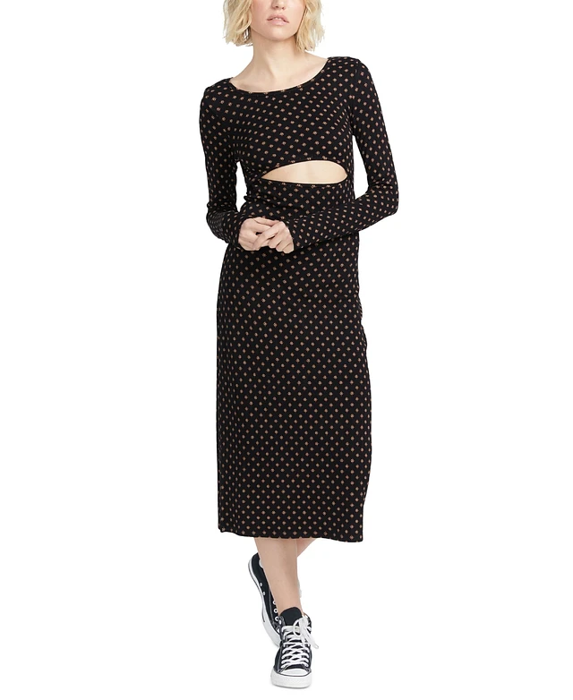 Volcom Juniors' Sential Cutout Long-Sleeve Midi Dress