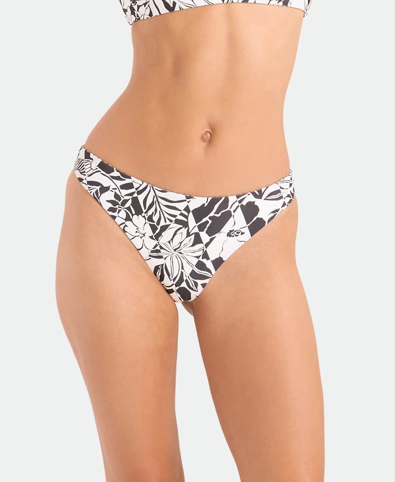 Graphic and eye-catching, these Volcom bikini bottoms showcase a bold monochrome tropical pattern that pairs effortlessly with your favorite swim separates. They hit at the hip with skimpy coverage in a cheeky cut, giving you a confident, vacation-ready silhouette from sand to sea.